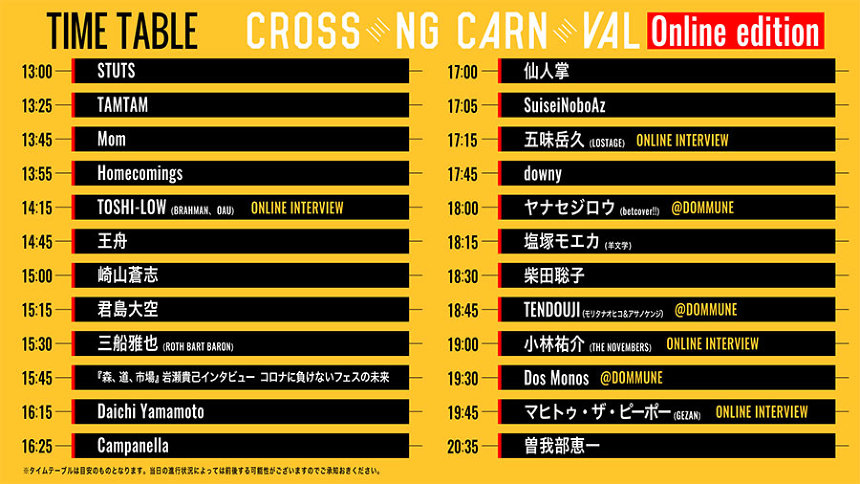 <※このオンラインフェス『CROSSING CARNIVAL’20 -online edition-』のうち、3つの生ライヴをDOMMUNEからストリーミングし、CINRA.NETを応援いたします!!!!>